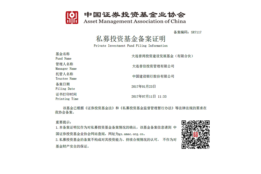 全資子公司-大連普灣投資建設(shè)發(fā)展基金(有限合伙)